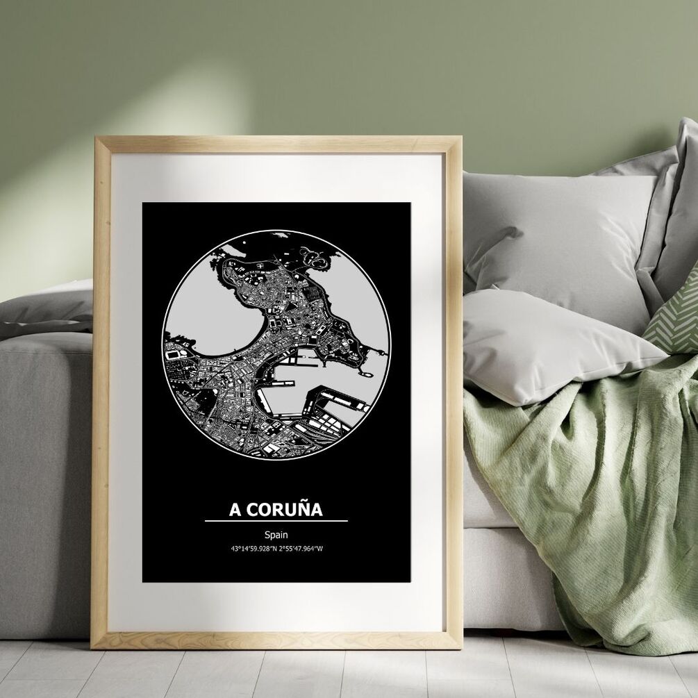 A Coruna Map Print, A Coruna Map Posters, Map of A Coruna, Map of Cities, A Coruna Spain, Any City Map, Home Print Poste