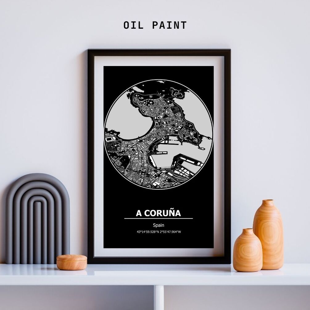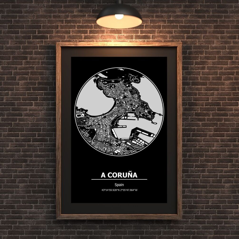 A Coruna Map Print, A Coruna Map Posters, Map of A Coruna, Map of Cities, A Coruna Spain, Any City Map, Home Print Poste