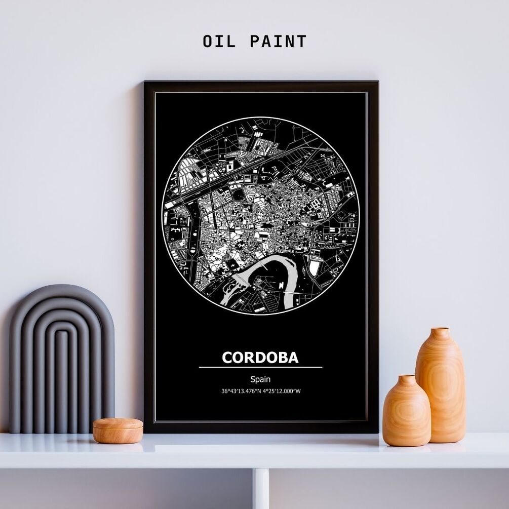 Elevate your decor with the allure of Cordoba, Spain. Celebrate its timeless beauty with our stylish city map print, and let its historic charm inspire you every day.