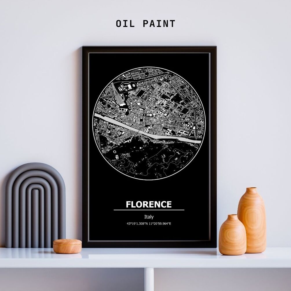 With its winding streets, historic landmarks, and picturesque riverbanks, Florence has inspired artists and travelers for centuries. Now, you can bring a piece of its charm into your own space with our artfully designed map poster.