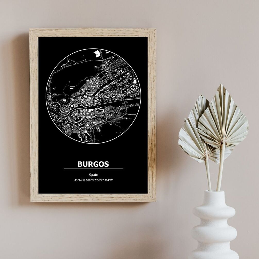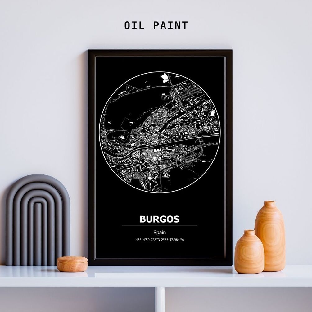 Elevate your interior decor with a touch of Spanish flair. Celebrate the beauty of Burgos with our modern City Map PRINTABLE, and transform your space into a stylish sanctuary of inspiration and sophistication.