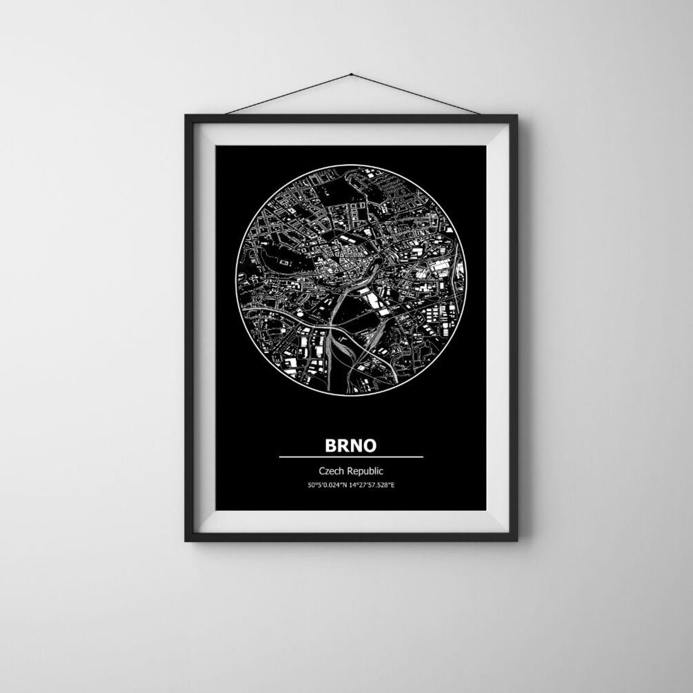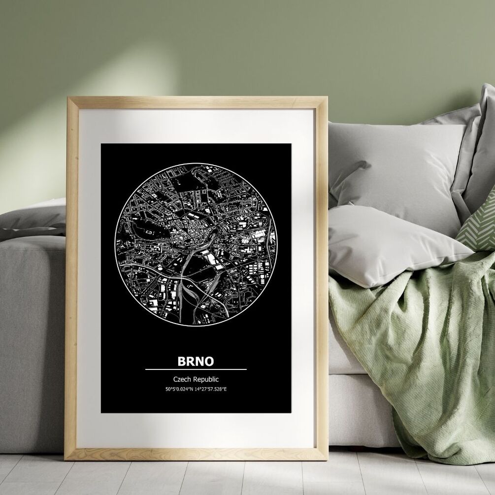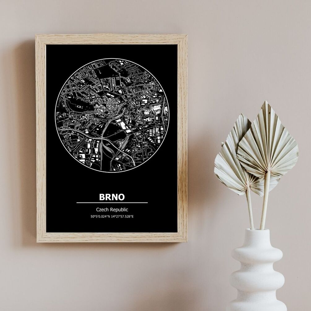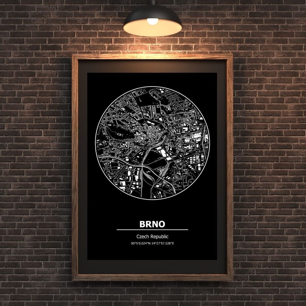 Available in sizes up to 116x165cm, our Brno Map is perfect for making a statement in your home or office. Whether you're a Brno native looking to showcase your hometown pride or seeking a thoughtful gift for a loved one, our map poster is sure to impress.